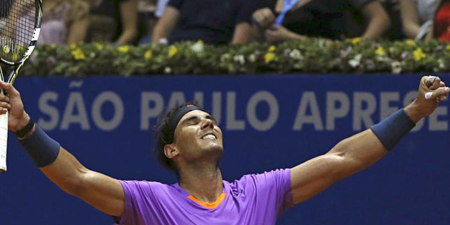 Nadal celebra su victoria ante Nalbandián en la final del Abierto de Brasil. (REUTERS)
