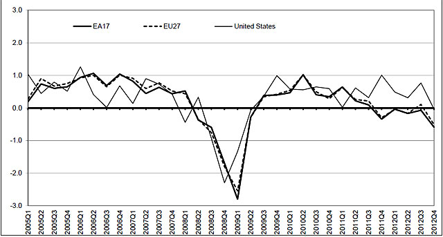 El PIB de la Eurozona se contrajo un 0,6% en el cuarto trimestre de 2012